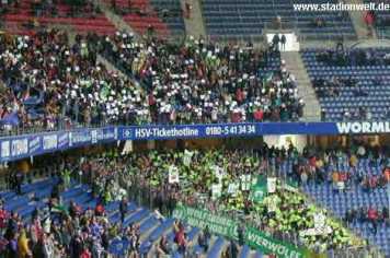 zum Volksparkstadion. Im Gästeblock angekommen,