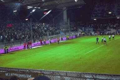 Zuschauern fast gefüllt. Unter ihnen ca. 4.000 Partizan-Fans, von denen einige auf der Tribüne randalierten und dabei mehrere Polizisten verletzten.Gegen die technisch ausgezeichneten Jugoslawen hatten die “Grünen”