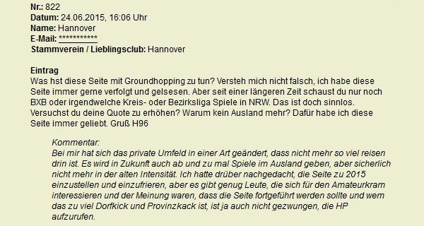 - 31.05.: www.groundhopping.de unterstützt die Aktion Rettet St. Pauli, eine Faninitative, die dem FC St. Pauli zweckgebunden Geld zur Sicherung der Regionalliga-Lizenz zukommen lassen will. Erst lesen, dann spenden!